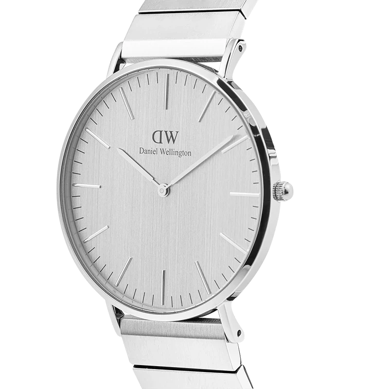 Den här modellen bygger vidare på DW's populära Classic‑kollektion men tar uttrycket i en ny riktning. Den borstade silvertavlan kombineras med vårt nya pianolänk‑armband, ett utbytbart band som ger extra flexibilitet i vardagen. Tillsammans skapar de en modern herrklocka med rena linjer, funktionell design och en självsäker look som sticker ut utan att kännas överdriven.