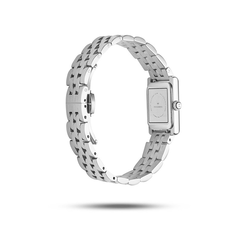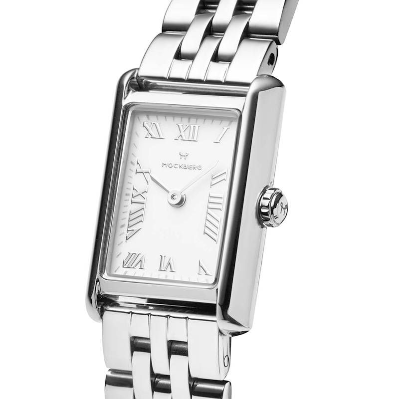Mockberg Timeless är klockan för kvinnan som vill bära ett smycke lika mycket som en tidsmarkör en accessoar som förvandlar varje outfit med sin rena, nordiska elegans. Den ikoniska fyrkantiga boetten i silver ger klockan ett distinkt och modernt uttryck, medan den vita tavlan med romerska siffror skapar en sofistikerad och klassisk balans.