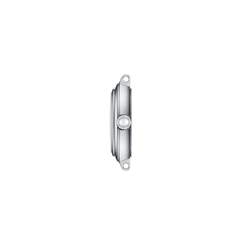 Den gröna remmen i präglat läder ger en mjuk kontrast till stålet och gör modellen extra mångsidig. Klockan är vattentät upp till 5 bar, vilket gör den tålig nog för vardagens rörelse men samtidigt tillräckligt elegant för festligare tillfällen. Tissot Bellissima visar hur en modern damklocka kan förena tradition, design och praktisk användbarhet i ett harmoniskt och attraktivt armbandsur.