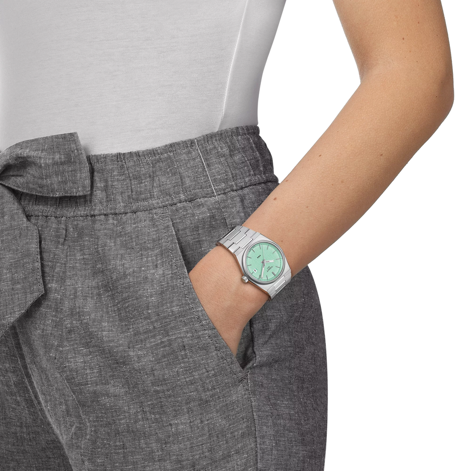 Den slanka, avsmalnande boetten i 316L rostfritt stål och det integrerade armbandet ger klockan en elegant, smidig siluett som sitter bekvämt på handleden. Storleken på 35 mm är identisk med originalet från 1978 – en hyllning till den tidlösa design som gjort PRX till en favorit i generationer.