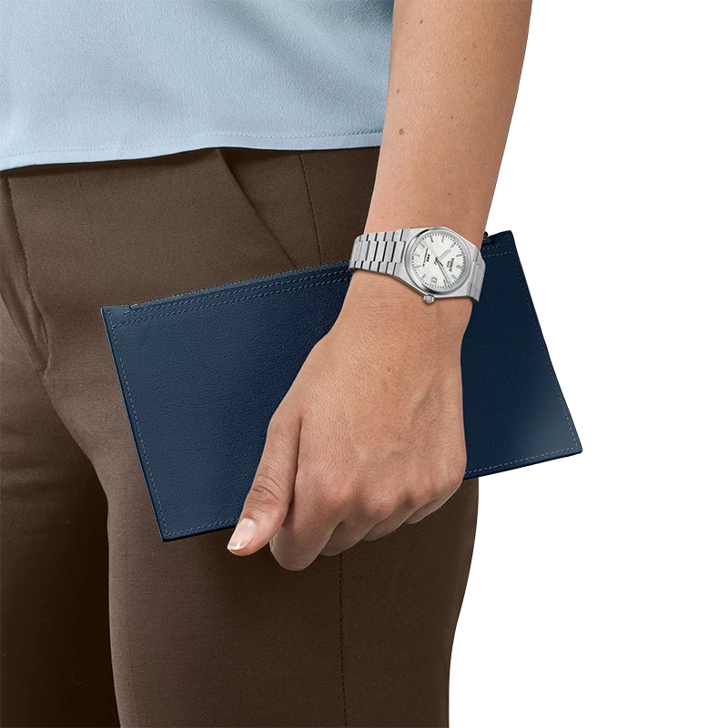 Den slimmade tonneauformade boetten och det integrerade stålarmbandet är direkt inspirerade av originalmodellen från 1978 och skapar PRX‑kollektionens omisskännliga silhuett. Urtavlan i äkta vit pärlemor fångar ljuset på ett levande sätt och skiftar naturligt i nyans – varje klocka är unik. Det diskreta ”waffle”-mönstret tillför struktur och ger modellen ett mer mångsidigt, nästintill unisex uttryck jämfört med klassiska pärlemortavlor. Med sin diameter på 35 mm sitter klockan elegant och bekvämt på handleden, idealisk för dig som uppskattar klassiska proportioner och hög bärkomfort.